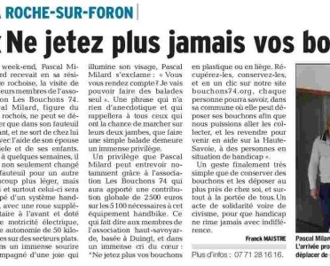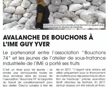 Article du Dauphiné Libéré en date du : 21/03/2018 ; LA ROCHE SUR FORON, ne jetez plus jamais vos bouchons