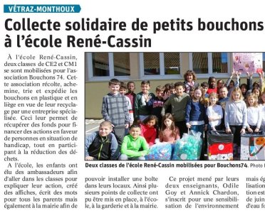 Article du Dauphiné Libéré en date du : 07/03/2019 ; École primaire René CASSIN de VÉTRAZ-MONTHOUX
