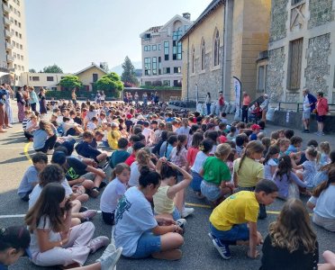 Des élèves viennent au local de DUINGT le lundi pour trier les bouchons. Ils sont notés.