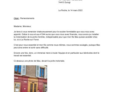 Message reçu par Françoise, notre responsable commission études des dossiers. Bonjour Madame Morel, Nous venons de reprendre le travail et (…)