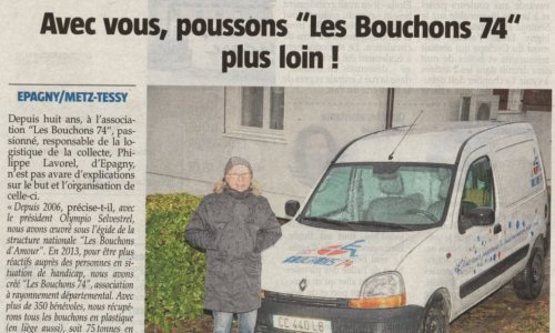 Article de l’ESSOR SAVOYARD en date du : 09/02/2017 ; ÉPAGNY METZ-TESSY : Avec vous, poussons "Les Bouchons 74" plus loin !