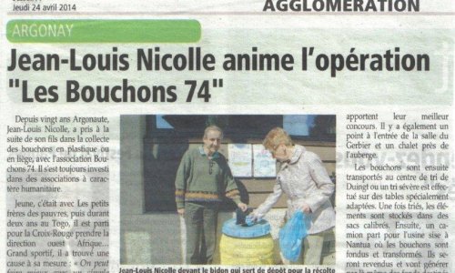 Article de l’Essor Savoyard en date du : 24/04/2014 ; ARGONAY, Jean-Louis NICOLLE anime l’opération "les Bouchons 74"