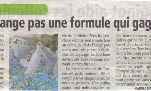 Article du Dauphiné Libéré en date du : 11/02/2022 ; FAVERGES-SEYTHENEX :L’UFAC de Faverges (Union Fédérale des Anciens Combattants) fait un don aux Bouchons 74