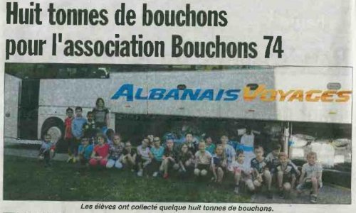 Article de l’Hebdo des Savoie 08-06-2017 ; Solidarité : Huits tonnes de bouchons pour l’association Bouchons 74