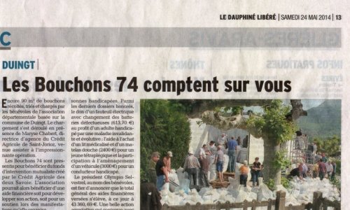 Article du Dauphiné Libéré en date du : 24/05/2014 ; DUINGT, les Bouchons 74 comptent sur vous