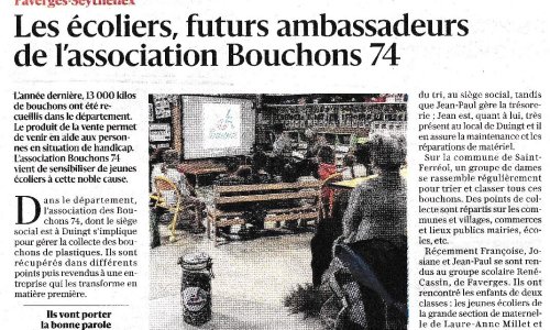 Article du Dauphiné Libéré en date du : 20/02/2025 ; Faverges-Seythenex : Les écoliers, futurs ambassadeurs de l’association Bouchons 74