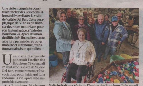 Article du Dauphiné Libéré en date du : 06/04/2025 ; Duingt ; Les Bouchons 74 : <<Une bouée de sauvetage >> pour Valérie Del Ben
