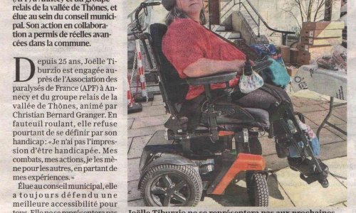 Article du Dauphiné Libéré en date du : 22/09/2025 ; THÔNES : Joëlle Tiburzio : 25 ans d’engagement pour une société plus inclusive