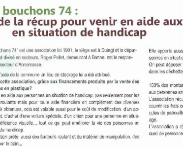 Sur son site, vous pouvez lire un article intéressant sur son engagement auprès des Bouchons 74. Vous pouvez le lire en cliquant sur le lien (…)