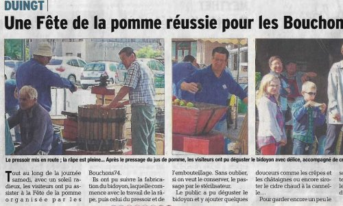 Article du Dauphiné Libéré en date du : 06/10/2014 : DUINGT, une fête de la pomme réussie pour les Bouchons 74