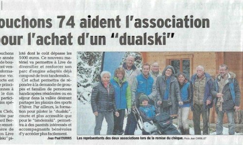 Article du Dauphiné Libéré en date du : 15/02/2016 ; LES CLEFS : Les Bouchons 74 aident l’association Live pour l’achat d’un dualski