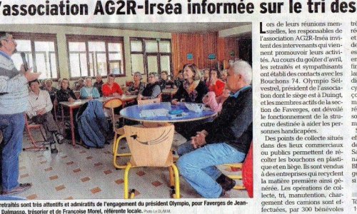 Article du Dauphiné Libéré en date du : 24/04/2016 ; L’association AG2R-Iséa informée sur le tri des bouchons