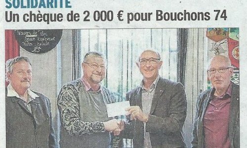 Article du Dauphiné Libéré en date du : 29/04/2016 ; Solidarité : un chèque de 2 000 € pour les Bouchons 74