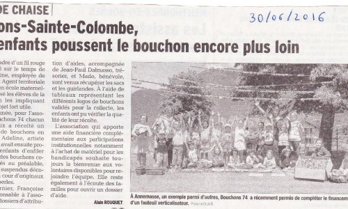 Article du Dauphiné Libéré en date du : 30/06/2016 ; VAL-DE-CHAISE : À Cons-Sainte-Colombe les enfants poussent le bouchon encore plus loin