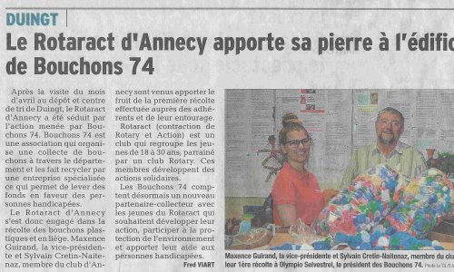 Article du Dauphiné Libéré en date du : 25/08/2016 ; Le Rotaract d’Annecy apporte sa pierre à l’édifice de Bouchons 74
