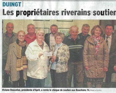 Article du Dauphiné Libéré en date du : 29/10/2014 ; DUINGT, les propriétaires riverains soutiennent les Bouchons 74