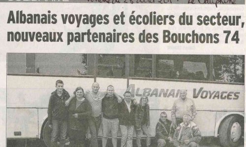 Article du Dauphiné Libéré en date du : 28/04/2017 : Albanais Voyages et écoliers du secteur, nouveaux partenaires des Bouchons 74