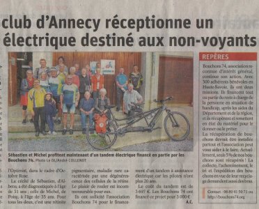 Article du Dauphiné Libéré en date du : 29/10/2022 ; ANNECY/DUINGT : Le Vélo Club d’Annecy réceptionne un tandem électrique destiné aux non-voyants