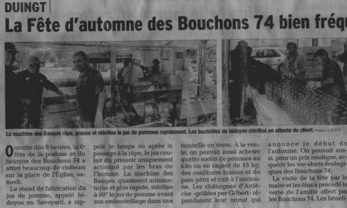 Article du Dauphiné Libéré en date du : 04/10/2017 ; la fête d’automne des Bouchons 74