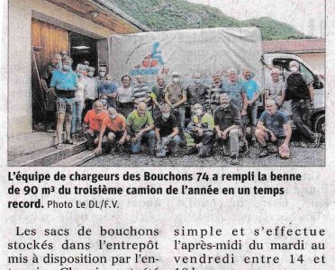 Article du Dauphiné Libéré en date du : 14 juin 2013 ; Les Bouchons 74 recherchent des volontaires pour le tri