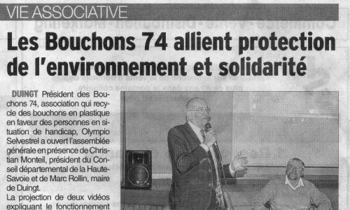 Article du Dauphiné Libéré en date du : 06/03/2018 ; les Bouchons 74 allient protection de l’environnement et solidarité