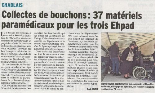 Article du Dauphiné Libéré en date du : 22/11/2018 ; CHABLAIS, 37 matériels pour 3 EHPAD