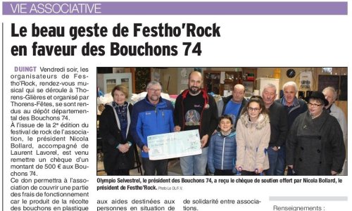Article du Dauphiné Libéré en date du : 17/12/2018 ; le beau geste des Festho’ Rock