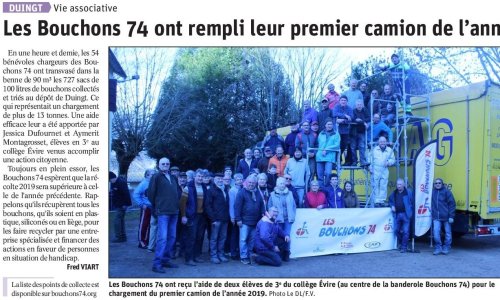 Article du Dauphiné Libéré en date du : 05/10/2016 ; VALLÉE DE L’ARVE ; Les Bouchons 74 aident les IME de Passy et Magland. L’association a financé l’achat d’une remarque qui servira aux deux établissements