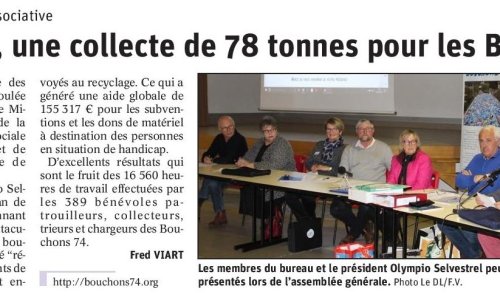 Article du Dauphiné Libéré en date du : 14/03/2019 ; Assemblée Générale 2019 des Bouchons 74