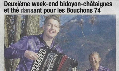 Article du Dauphiné Libéré en date du : 18 octobre 2013 ; DUINGT, 2ème week-end bidoyon-châtaignes et thé dansant pour les Bouchons 74
