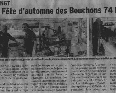 Article du Dauphiné Libéré en date du : 04/10/2017 ; la fête d’automne des Bouchons 74