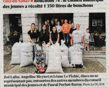 Article du Dauphiné Libéré en date du : 24/06/2024 ; VIUZ-en-SALLAZ ; Bouchons 74 : le conseil municipal des jeunes a récolté 1 350 litres de bouchons