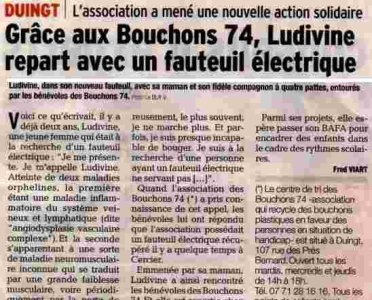Article du Dauphiné Libéré en date du : 24/09/2017 ; Ludivine repart avec un fauteuil électrique