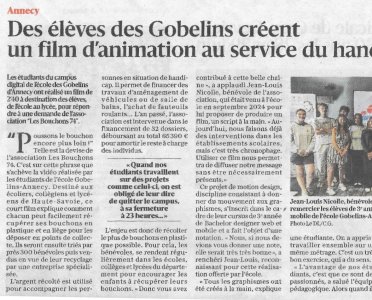 Article du Dauphiné Libéré en date du : 22/06/2025 ; Annecy : Des élèves des Gobelins créent un film d’animation au service du handicap