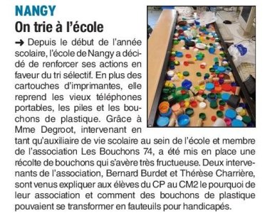 Article du Dauphiné Libéré en date du : 22/03/2017 ; NANGY : On trie à l’école