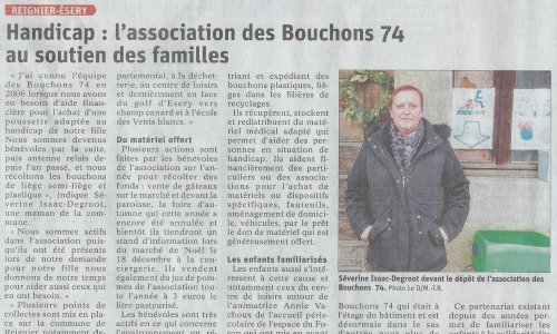 Article du Dauphiné Libéré en date du : 10/12/2021 ; REIGNIER-ÉSERY : Handicap : l’association des Bouchons 74 au soutien des familles