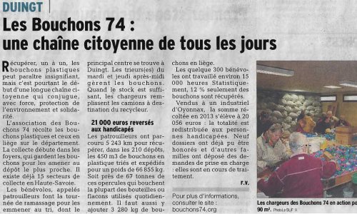 Article du Dauphiné Libéré en date du : 26/02/2014 ; Les Bouchons 74 , une chaîne citoyenne de tous les jours