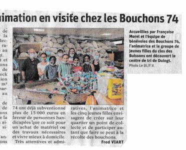 Article du Dauphiné Libéré en date du : 16/04/2022 ; FILLIÈRE (THORENS-GLIÈRES) : Centre Arthur-Lavy : quand le tri des bouchons devient thérapeutique