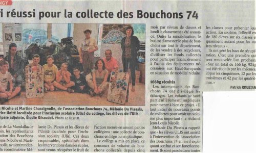 Article du Dauphiné Libéré en date du : 30/06/2022 ; SILLINGY : Défi réussi pour la collecte des Bouchons 74