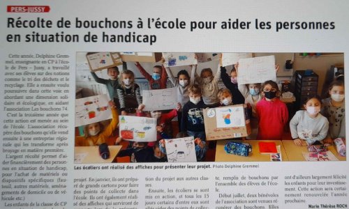 Article du Dauphiné Libéré en date du : 18/07/2022 ; PERS-JUSSY : Récolte de bouchons à l’école pour aider les personnes en situation de handicap