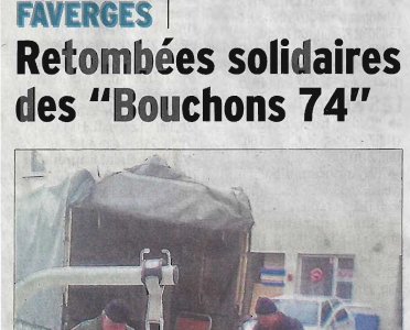 Article du Dauphiné Libéré en date du : 01/02/2014 ; FAVERGES, retombées solidaires des Bouchons 74