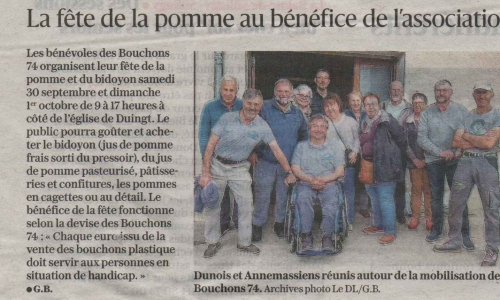 Article du Dauphiné Libéré en date du : 29/09/2023 ; Duingt ; La fête de la pomme au bénéfice de l’association