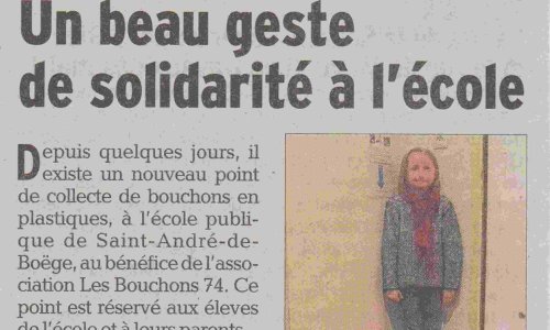 Article du Dauphiné Libéré Saint André de Boëge : Un beau geste de solidarité à l’école