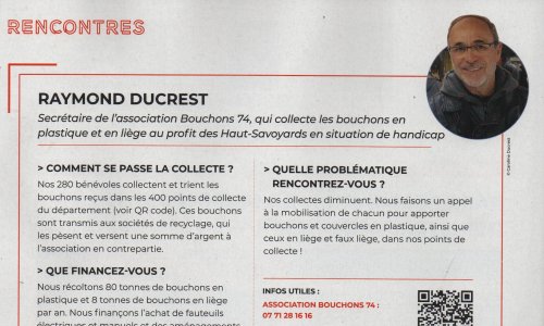 Article du Dauphiné Libéré en date du : 23/03/2022 ; DUINGT : Bouchons 74 : l’activité de récupération et de redistribution de matériel médical pourrait encore se développer