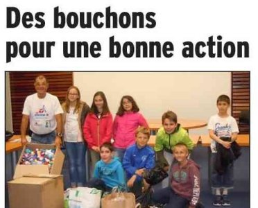 Article du Dauphiné Libéré en date du : 02/06/2018 ; BONNE, des bouchons pour une bonne action