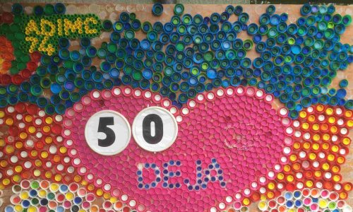 Lors de son passage pour récolter des bouchons à l’institut Belluard, Philippe a remarqué cette belle fresque en bouchons plastique réalisée par l’A.D.I.M.C. 74. (Association Départementale des Infirmes Moteurs Cérébraux de Haute-Savoie)