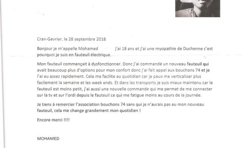 Article du Dauphiné Libéré en date du : 06/12/2018 ; Une aide pour un fauteuil
