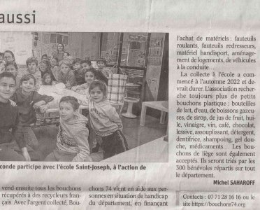 Le mardi 15 janvier, nos amis bénévoles Sylvie et Roger (responsable collectage bouchons 74 sur le secteur) sont allés présenter nos actions au centre périscolaire de l’école la fontaine à Annemasse.