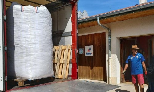 Ainsi, ce sont près de 4 200 kg de bouchons en liège soit 10 "BIG BAG" que Daniel MIEGE, Jean RUFFIER et Olympio SELVESTREL ont chargés dans le camion de la Sté PEYSSON de la Motte-Servolex.