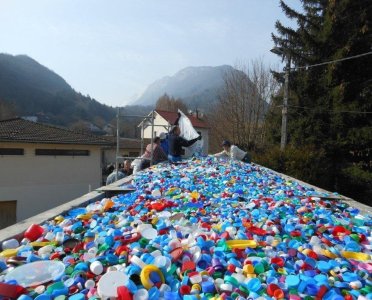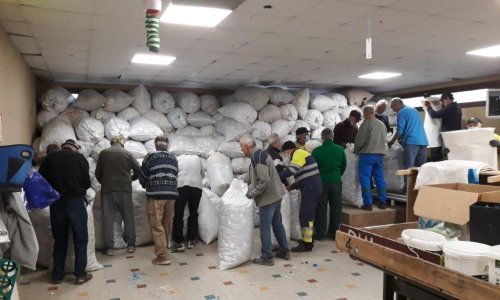 Sur les photos, vous remarquerez qu’il y a des sacs de bouchons déposés manuellement.